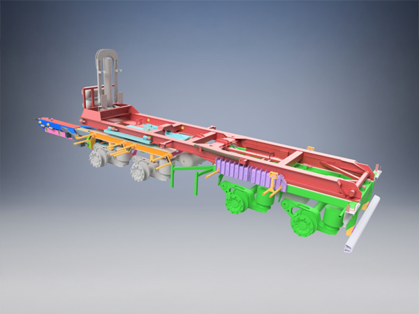 Projekt realizowany na zlecenie klienta z Norwegii. Przyczepa z rozsuwanym rozstawem osi.